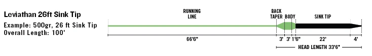 The 250gr, 300gr, 350gr and 400gr, 26ft Sink tip lines, and the 30 ft, 550gr Billfish Shooting Head have welded loops on both ends for easy rigging. In addition, the Billfish Shooting Head has a bright orange, 4ft long rear section so anglers can easily see the rear end of the head.